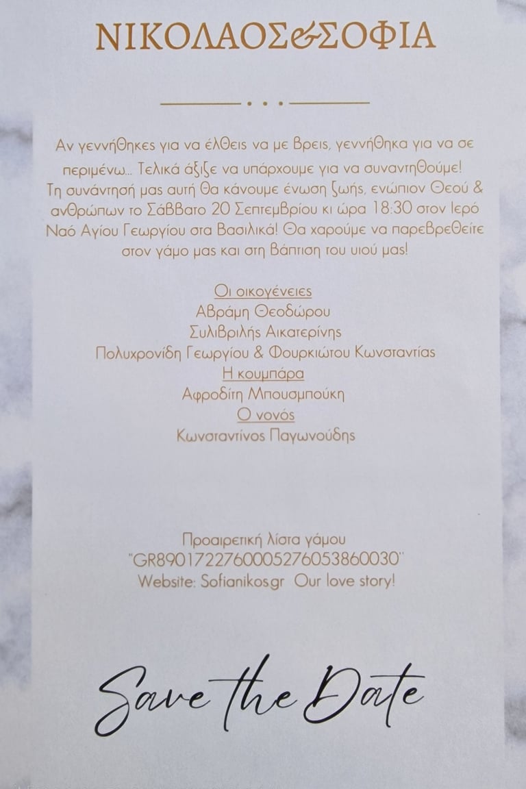 στον γάμο μας και στη βάπτιση του υιού μας!